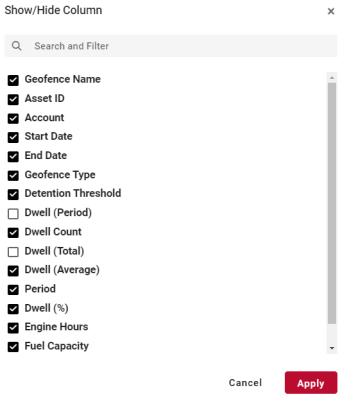 Select or clear each check box to indicate which columns to display, and then click Apply.