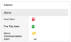 This widget is specific to reefers. It indicates the various reefer alarms and the status of each for the selected reefer. Hover over any colored icon for additional information.